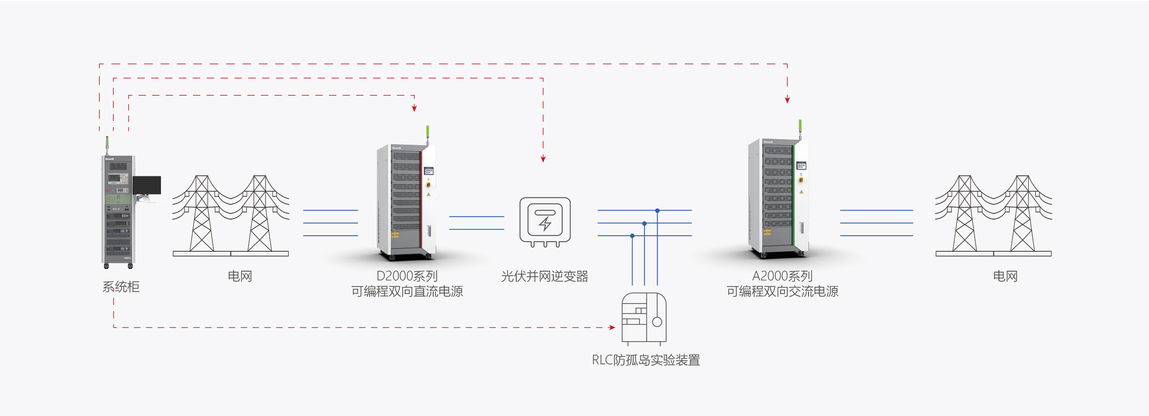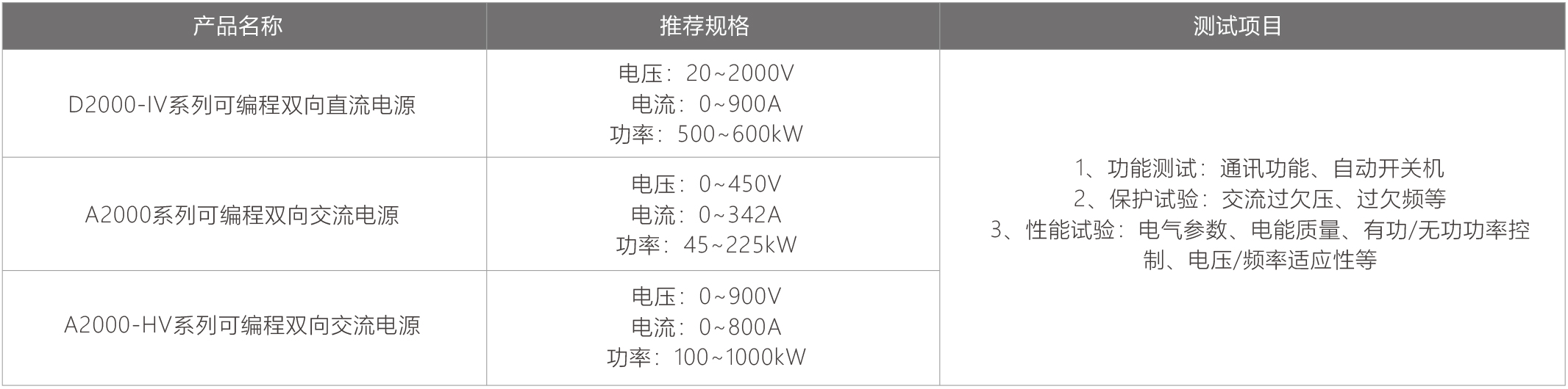 东升国际光伏测试解决方案支持逆变器发电及并网全天候全场景模拟,匹配大功率/超高压的测试电源模拟大型光伏方阵及电压级别较高的电网端,为光伏客户/测试机构提供专业测试方案。