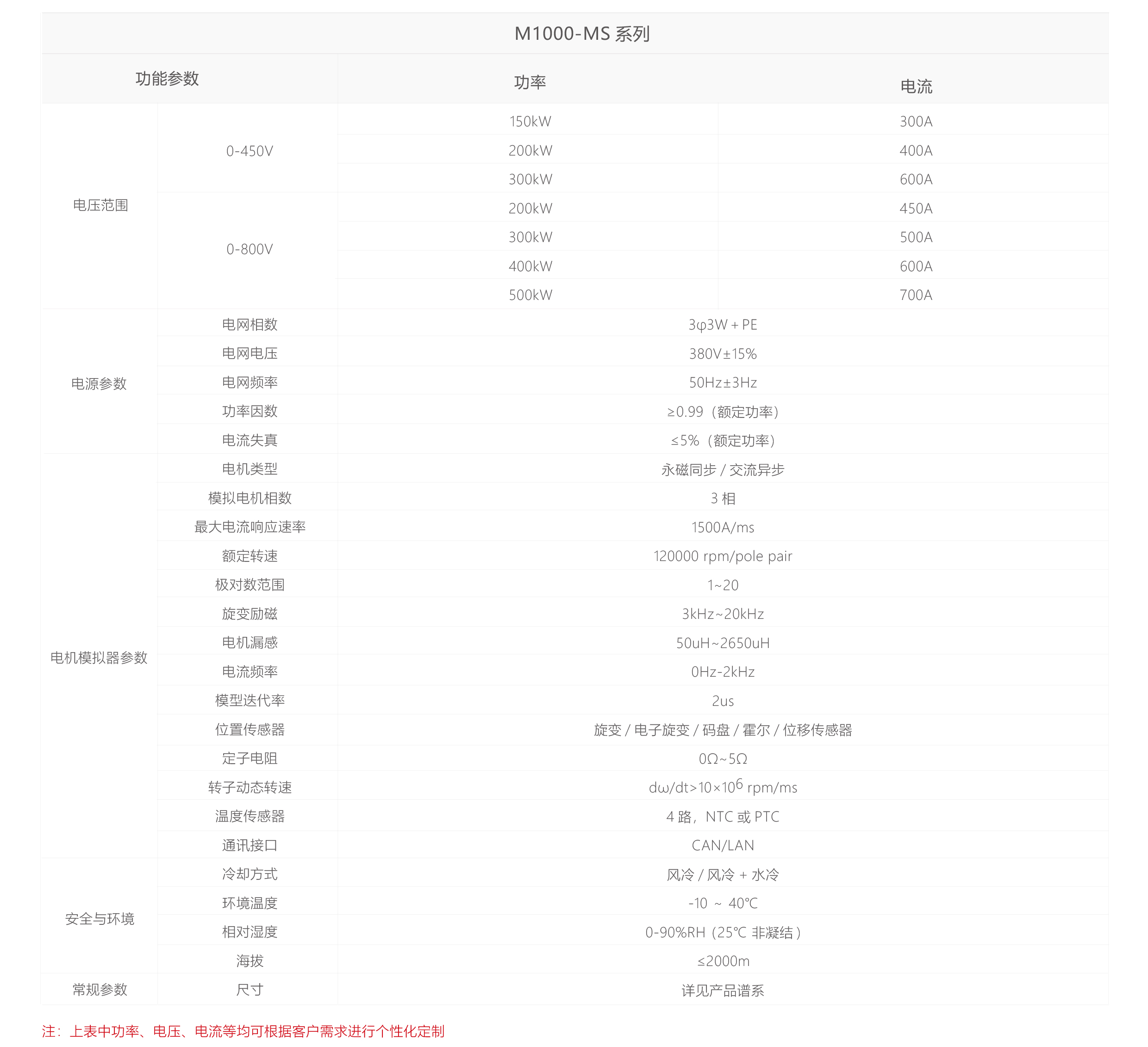 高压:800V(L-L) 高转速:120000 rpm/pole pair 高速响应:1500A/ms 高速模型迭代:2us 高电流频率:2kHz@ 基波 电机感量:50uH-2650uH