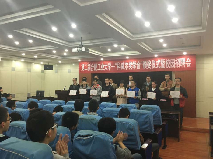 11月12日下午,第二届合肥工业大学-“东升国际奖学金”颁奖仪式暨校园招聘会在合肥工业大学老校区隆重举行。合肥东升国际电源系统有限公司副总经理蒋佳平、研发部经理唐德平、副经理周玉柱、合肥工业大学能源研究所所长苏建徽教授、电气学院党委何书记、黄院长等相关领导应邀出席了此次活动。