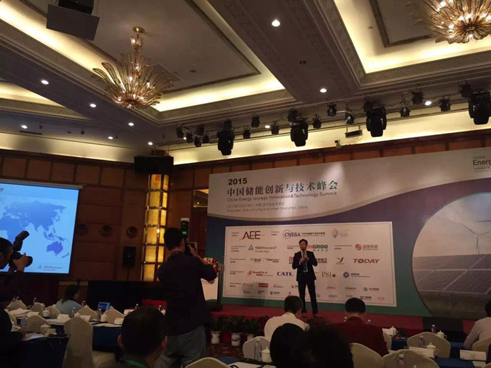 2015年12月2日至3日,由ACE Events主办,联合国内储能最大联盟-中关村储能产业技术联盟,在澳大利亚储能联盟及印度储能协会支持下,“中国储能创新与技术峰会2015”在深圳圣廷苑酒店隆重召开。共有储能领域的专家、权威人士300余人出席这次峰会活动。