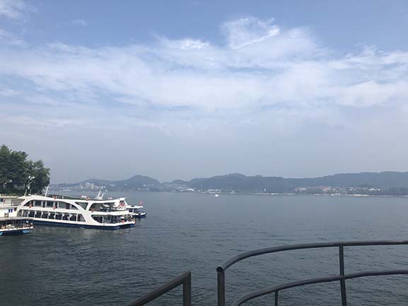 游览完齐云山,全体员工就近入住山下的祥富瑞精品文化客栈,第二天一早驱车前往本次活动的第二站—千岛湖。千岛湖(新安江水库),位于浙江省杭州市淳安县境内,小部分连接建德市西北,是为建新安江水电站拦蓄新安江下游而成的人工湖。千岛湖水在中国大江大湖中位居优质水之首,为国家一级水体,不经任何处理即达饮用水标准,被誉为“天下第一秀水”。本次集体游游览了千岛中的其中四个,员工们体验了摇船、玻璃栈道、滑索等多个娱乐项目。