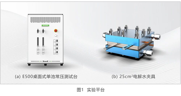 为探究在PEMWE中原位测量CV,本实验基于东升国际-科技赋能场景,让娱乐更有趣. 的E500电解单池测试系统,如图1(a)所示;电解水单池夹具采用Kewell自研的有效面积为25 cm²的单池夹具,如图1(b)所示;电化学实验,如循环伏安测试,使用DHE电化学工作站进行控制。