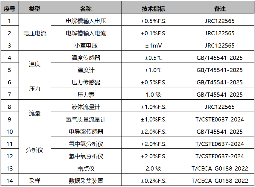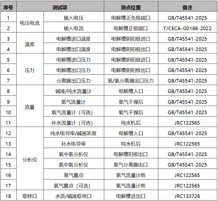 大功率电解槽测试系统除满足制氢系统BOP所涉及的特种设备(压力容器、压力管道、安全附件)、防爆、接地、临氢/耐碱材质选择、脱油脱脂处理等安全要求外,出口产品还需符合ISO 22734、CE或IEC等相关认证要求。