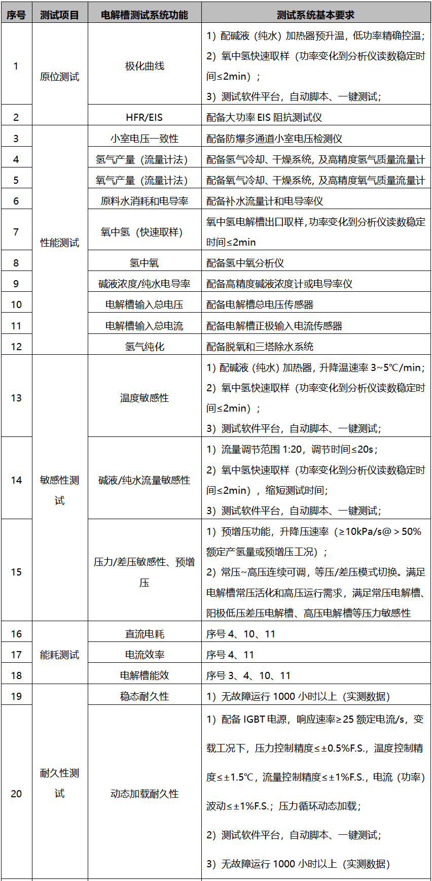 经调研发现,国内外多数电解槽测试场站由设备厂家自行建设,主要服务于自身产品的测试与验证工作。但此类场站在适配不同规格电解槽时,常面临操作性不足、动态指标不高及运行范围受限等问题。与此同时,国内外头部企业及第三方机构已加快测试平台业务的布局步伐,加之多项电解槽测试国家标准的相继出台,如GB/T 45541-2025《PEM电解槽性能测试方法》,更为测试提供了更坚实的依据。