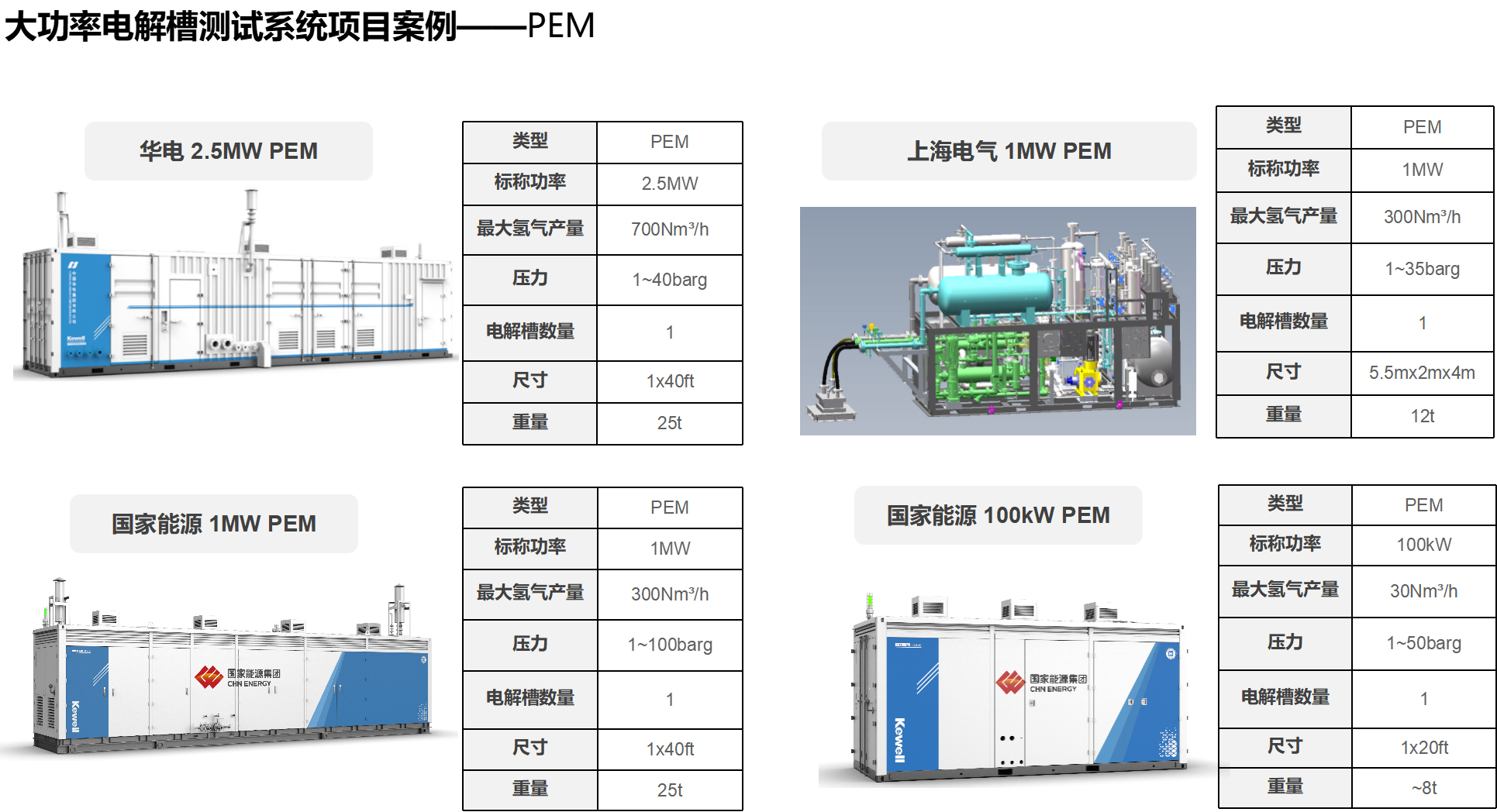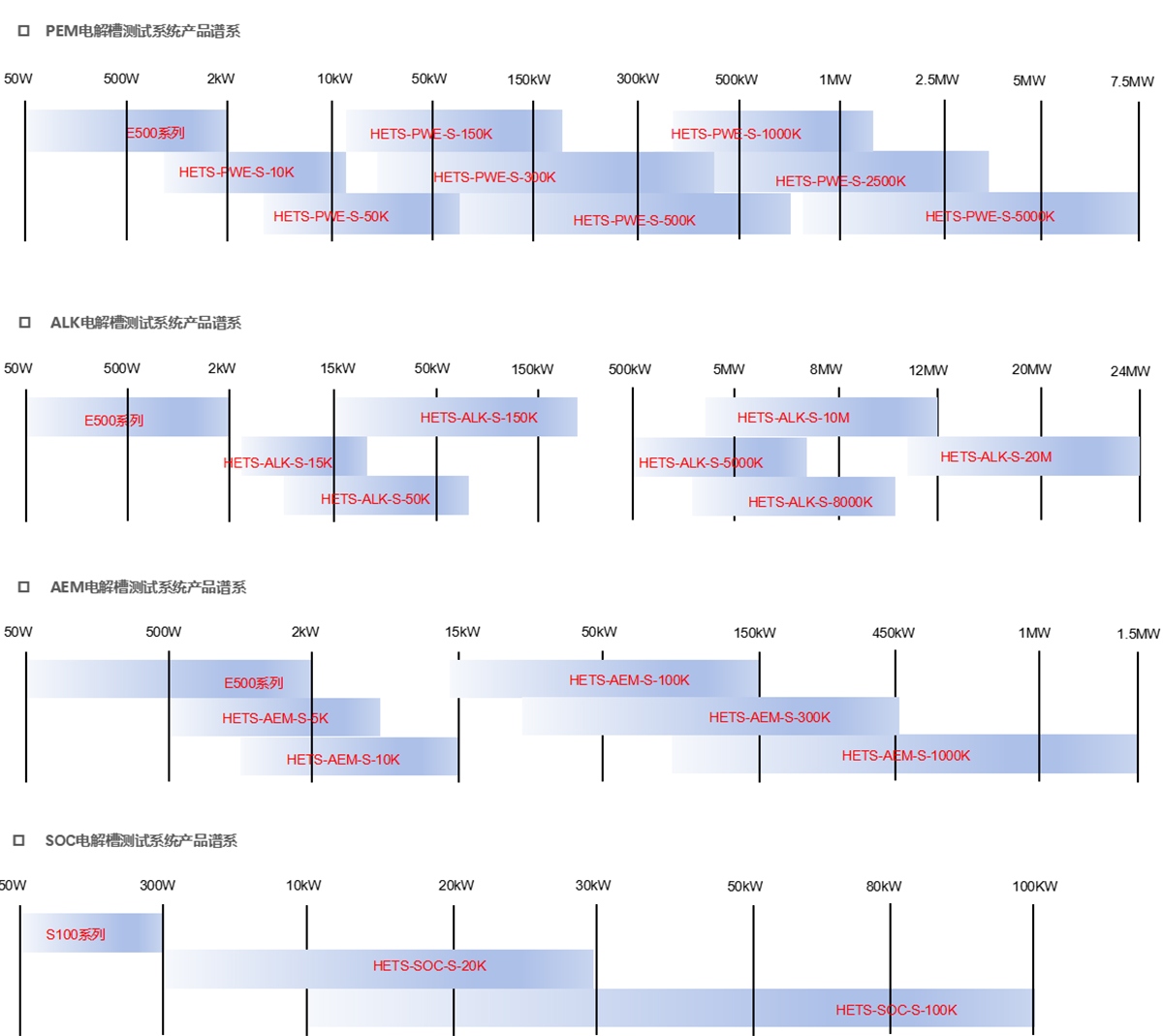 Kewell电解槽测试系统产品谱系涵盖PEM/ALK/AEM/SOEC多种类型,同时满足大功率电解槽测试需求,并可根据客户需求,在上述产品系列的基础上,提供定制化服务。
